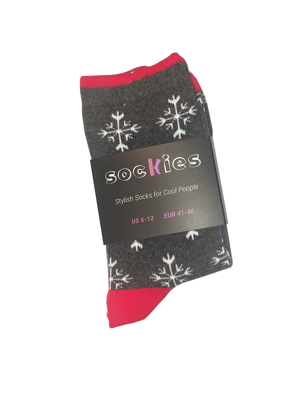 Winter's wonder encapsulated in a sock! Our "Snowflakes in Grey" offer a modern twist on the classic snowflake design, perfect for those seeking mens patterned socks that balance cool with...